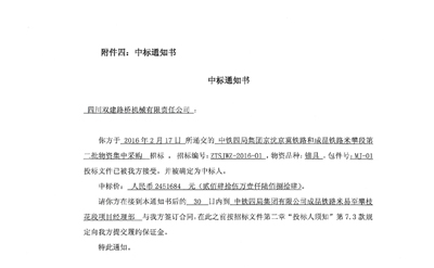 热烈祝贺我公司中的中铁十八局商合杭站前四标段铁路锚具