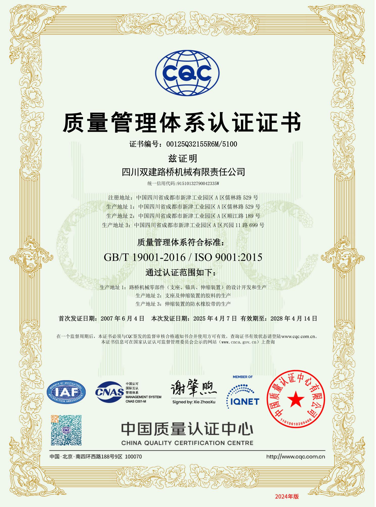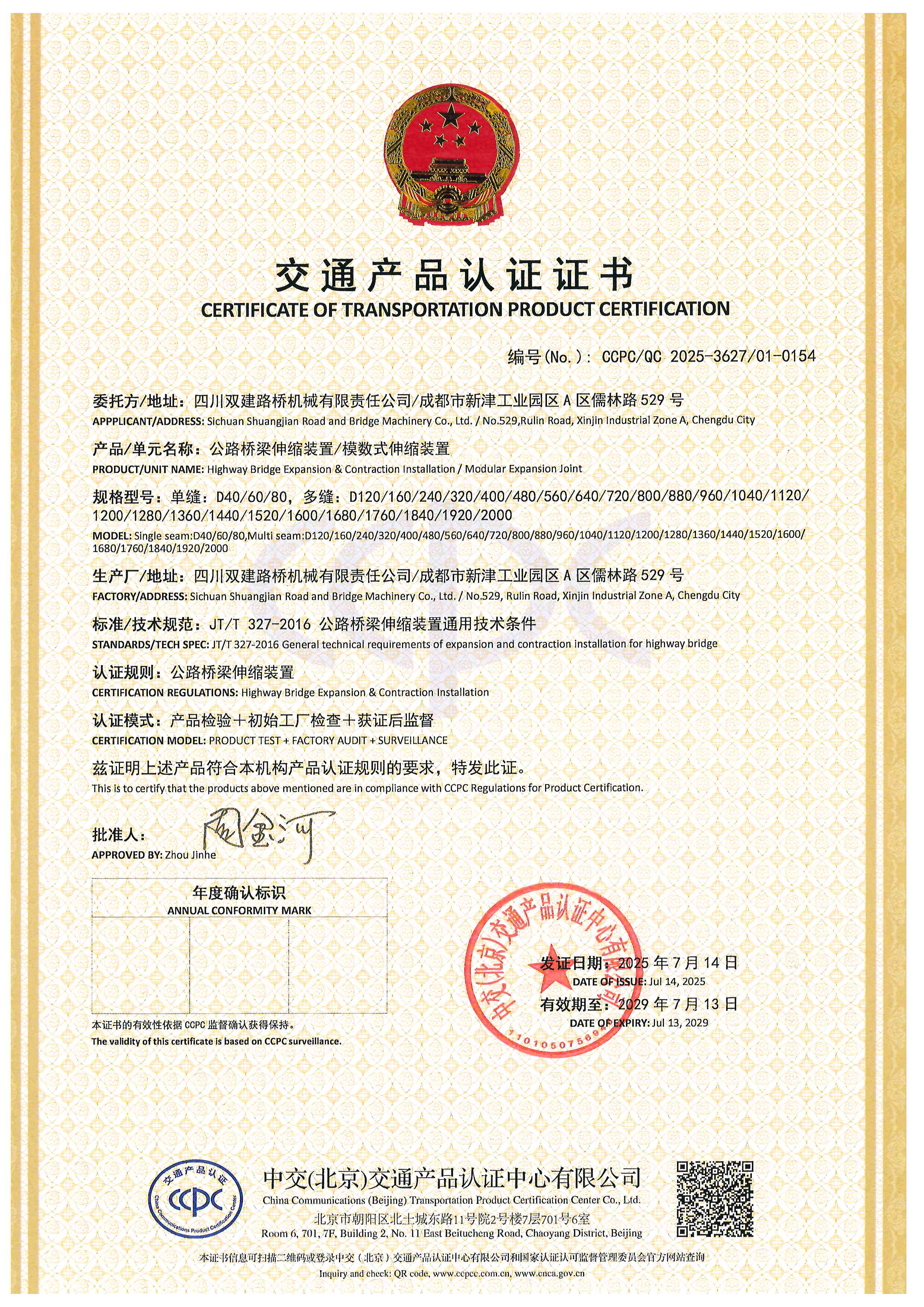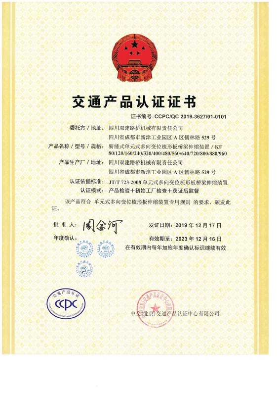 交通产品CCPC认证证书-桥梁隔震橡胶支座